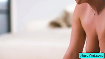 Sexy blonde masseuse rub her natural big boobs covered in nuru gel on her client during slippery massage - Slimthick Vic, Chris Scandal