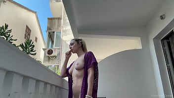 Blonde beauty naked on the balcony