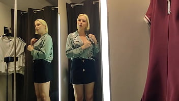 Seducing you in a fitting room. Sexy try on transparent clothes in the fitting room