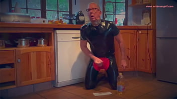 naked slave pig exposed hot and horny after party, fucks himself with brush and finally with bottle, try fisting