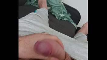 Handjob cum hard cock in bathroom