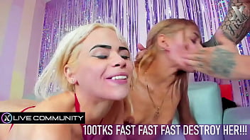 Two teen girls get ass fucked by a big monster cock with DP and get nasty anal crempie