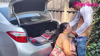 Stepmom Cougar Young Man Outdoors in Car