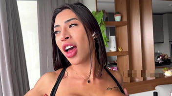 Ariel Ortiz masturbates with her double dildo in her room when her husband goes to work