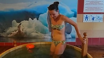 Petite naked blondie Eva Tali stripping and taking sunbath at the beach