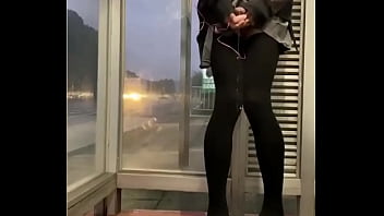 Hot MILF gets fucked in standing doggy style and cums in condom