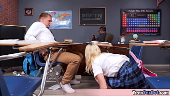 Long legged blonde girl gets fucked by her crush in the detention room